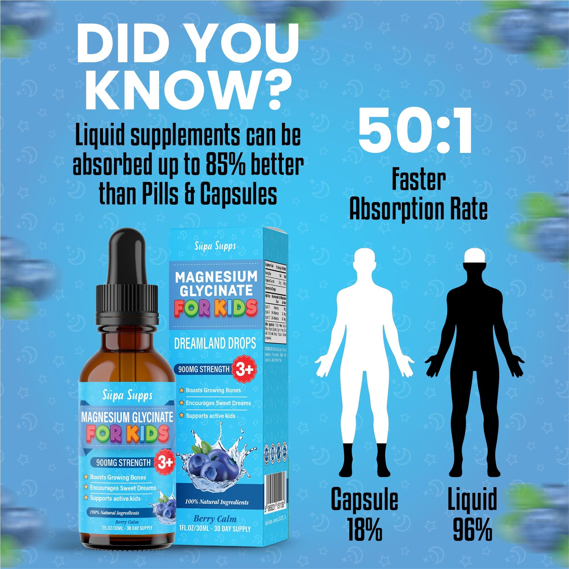 For children ages 3 and up, take the appropriate dosage based on age: - Ages 3–5: 1ml per day (30mg magnesium) - Ages 6–8: 1–2ml per day (30–60mg magnesium) - Ages 9–12: 2–3ml per day (60–90mg magnesium) Do not exceed the recommended dose unless advised by a healthcare professional. If your child has a medical condition or takes medication, consult a doctor before use.